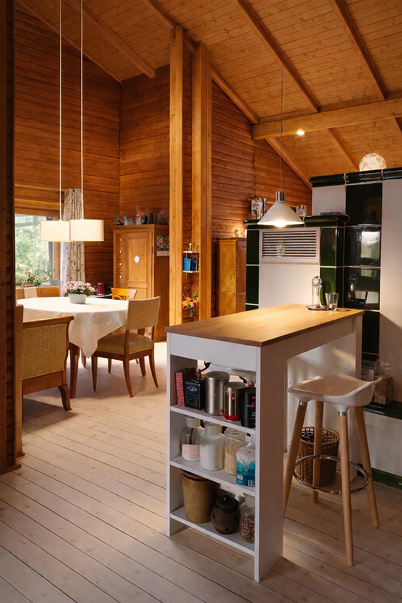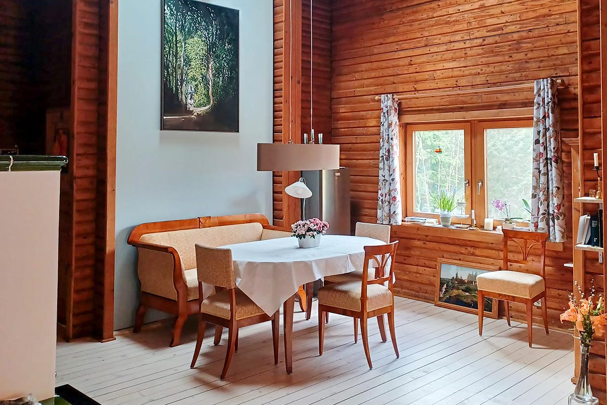 Unser gemütliches Holzblockhaus bietet Platz für 6 bis 8 Personen – ideal für Familien oder kleine Gruppen.